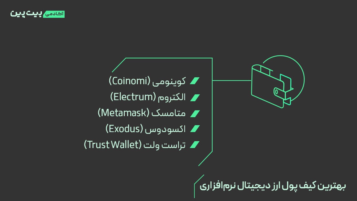 اولین کار برای ساخت کیف پول ارز دیجیتال انتخاب یک کیف پول مطمئن است. در بازار انواع مختلفی کیف پول وجود دارد که هرکدام ویژگی‌ها و روش‌های امنیتی خاص خودشان را دارند. به همین دلیل، برای پیدا کردن بهترین کیف پول مطمئن باید تحقیق کرده و بهترین گزینه را انتخاب کنید. چند مورد از بهترین کیف پول‌های نرم‌افزاری و سخت‌افزاری عبارت‌اند از: